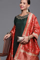Dhiyona IE Women Green Thread Work Liva Kurta with Trousers & Dupatta