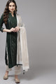 Dhiyona IE Women Green & White Embroidered Kurta with Trousers & Dupatta