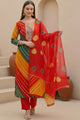 Dhiyona IE Women Leheriya Printed Regular Thread Work Kurta with Trousers & With Dupatta