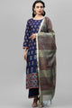 Dhiyona IE Women Navy Blue Ethnic Motifs Printed Liva Kurti Set & With Dupatta