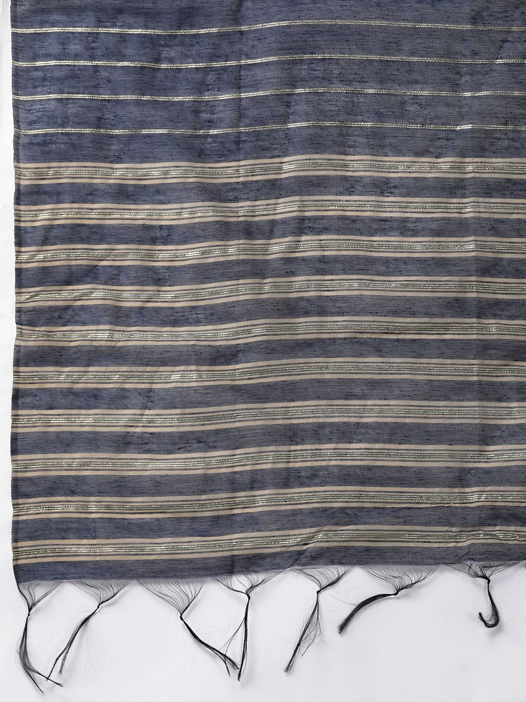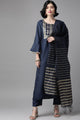 Dhiyona IE Women Navy Blue & Golden Yoke Design Kurta with Trousers & Dupatta