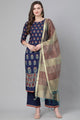 Dhiyona IE Women Navy Blue & Green Foil Print Kurta with Palazzos & Dupatta