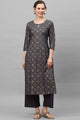 Dhiyona IE Women Navy Blue Printed Regular Straight Keyhole Neck Pure Cotton Kurta Set