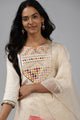 Dhiyona IE Women Off White Ethnic Motifs Yoke Design Regular Liva Kurta with Palazzos & With Dupatta