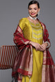 Dhiyona IE Women Olive Green Ethnic Motifs Embroidered Kurta with Trousers & Dupatta
