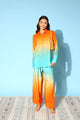 Orange & turquoise blue ombre shirt, has shirt collar, long sleeves & full-button placket
