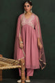 Mauve embroidered Kurta with Trousers with dupatta