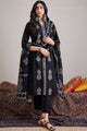 Black embroidered Kurta with Trousers with dupatta