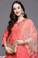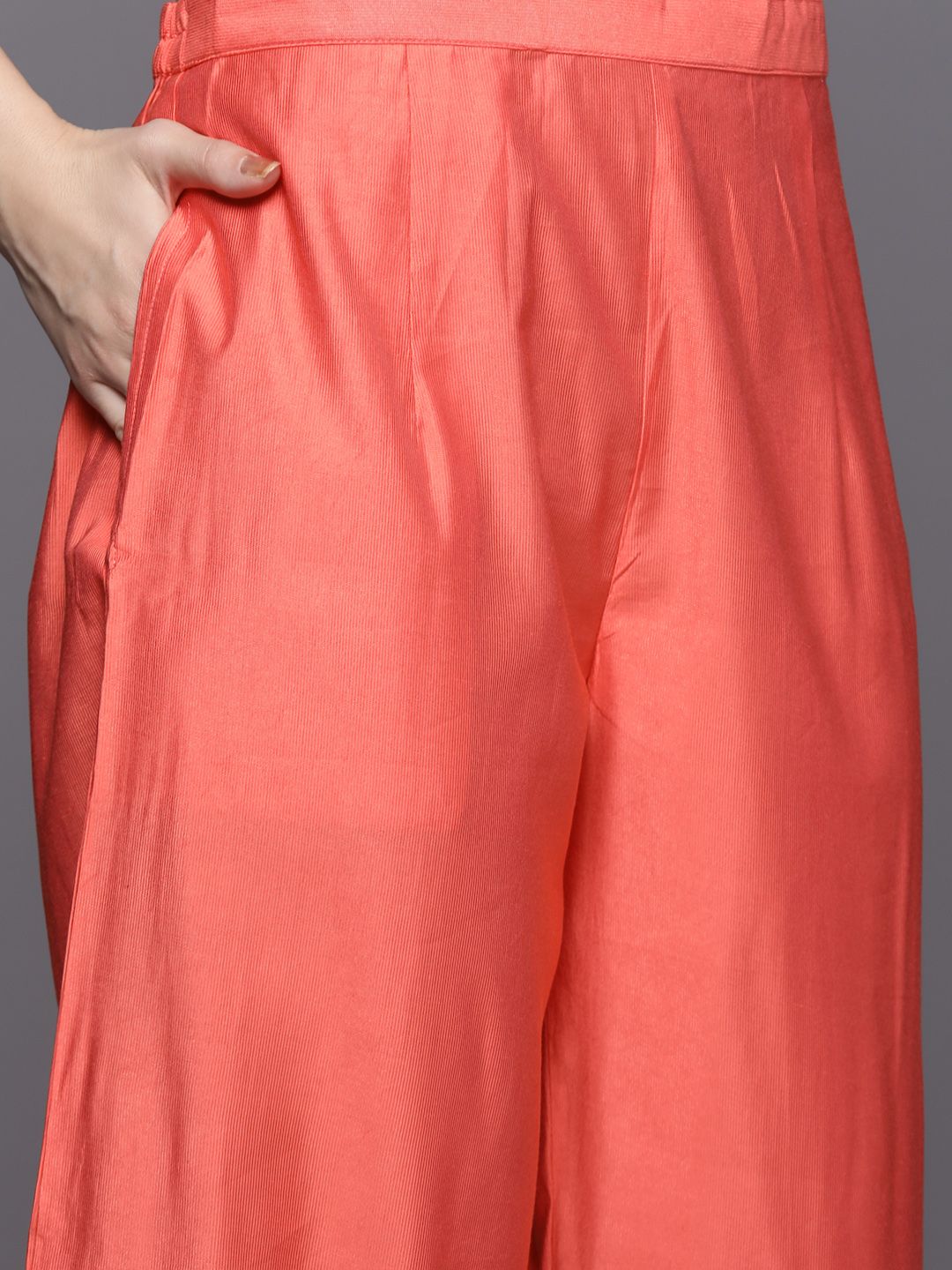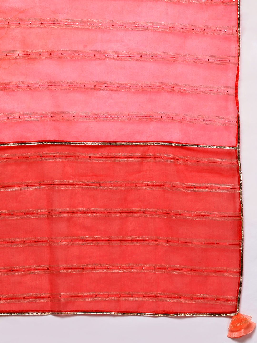 Dhiyona IE Women Pink Floral Embroidered Sequinned Liva Kurta With Palazzos & Dupatta
