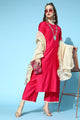 Dhiyona IE Women Pink Yoke Design Liva Kurta with Palazzos & Dupatta