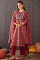 Maroon printed Kurta with Trousers with dupatta