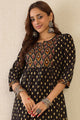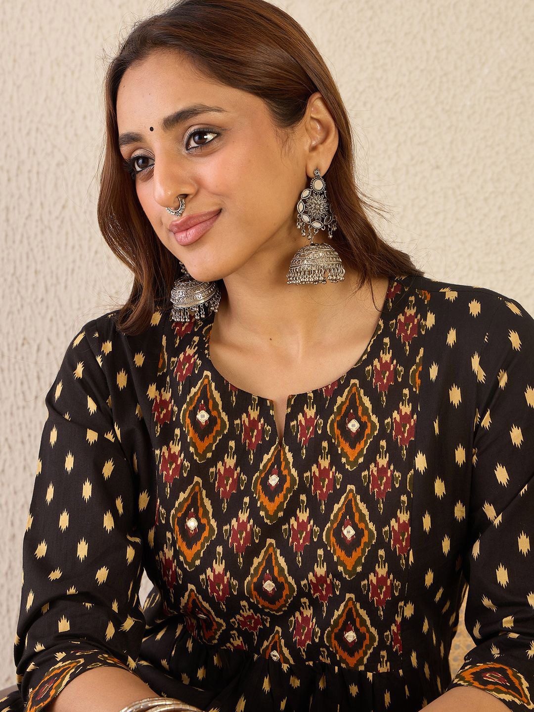 Dhiyona IE Women Printed Pleated Mirror Work Pure Cotton Kurta with Trousers