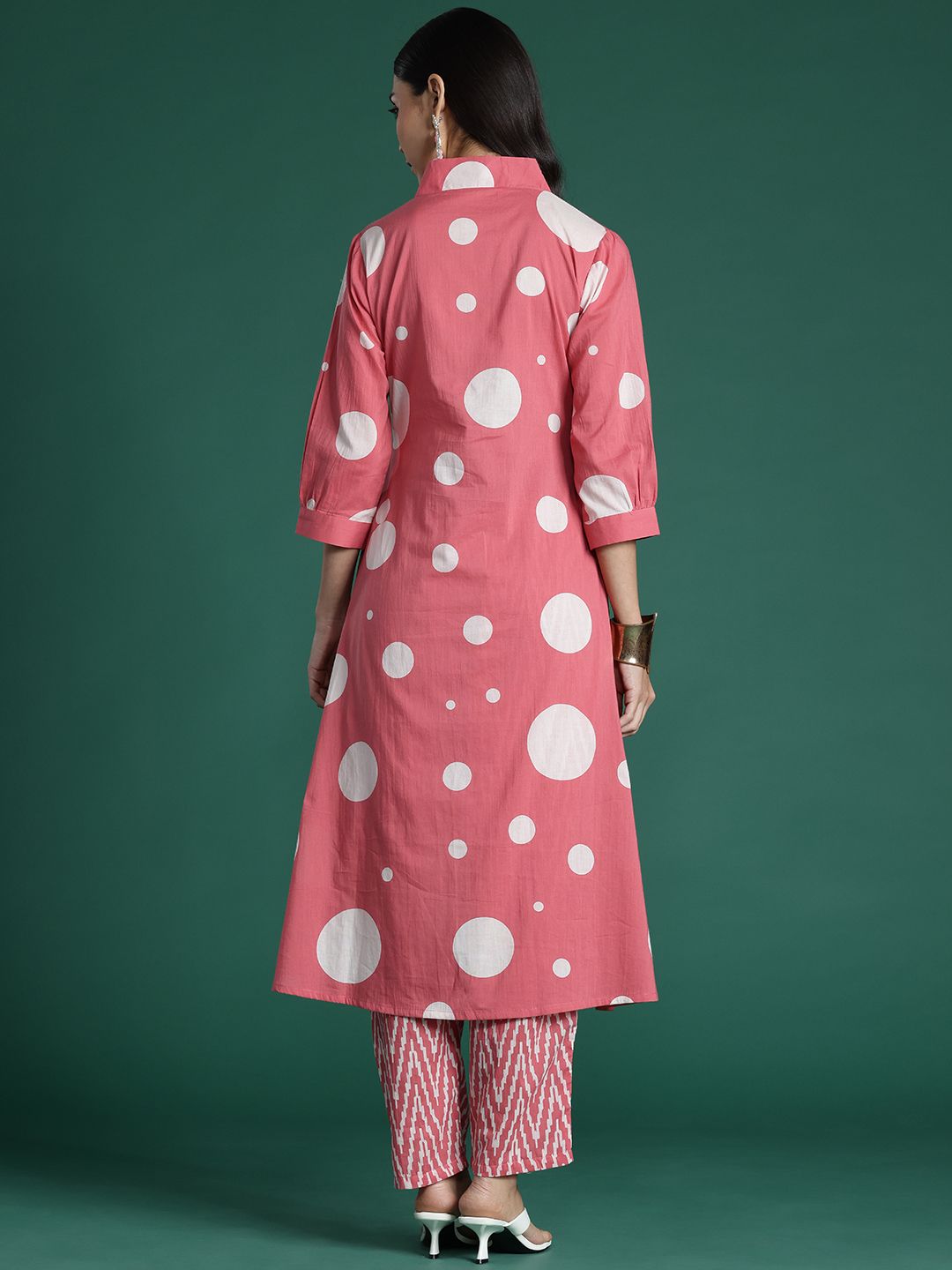 Dhiyona IE Women Printed Pleated Pure Cotton Kurta with Trousers
