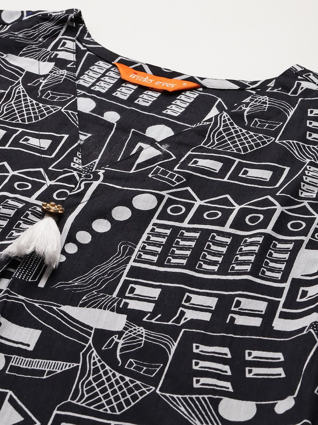 Dhiyona IE Women Printed Pleated Pure Cotton Kurta with Trousers