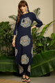 Navy blue printed Kurta with Trousers