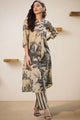 Dhiyona IE Women Printed Regular Linen Kurta with Trousers