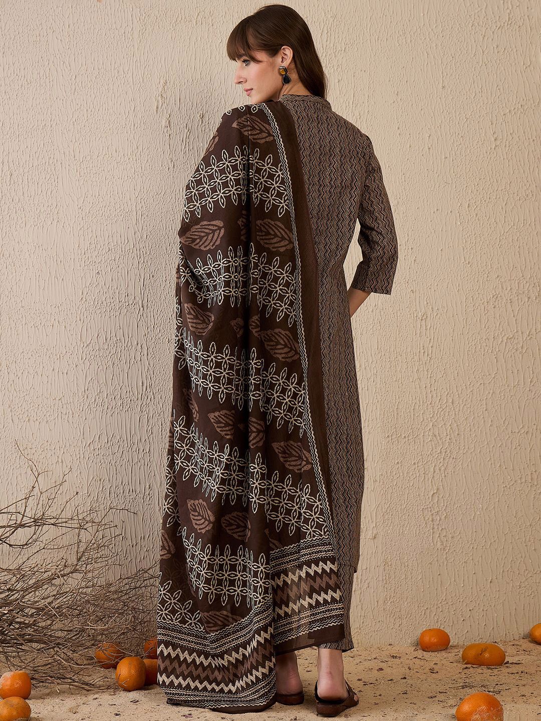Dhiyona IE Women Printed Regular Pure Cotton Kurta with Trousers & With Dupatta