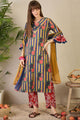 Dhiyona IE Women Printed Regular Pure Cotton Kurta with Trousers & With Dupatta