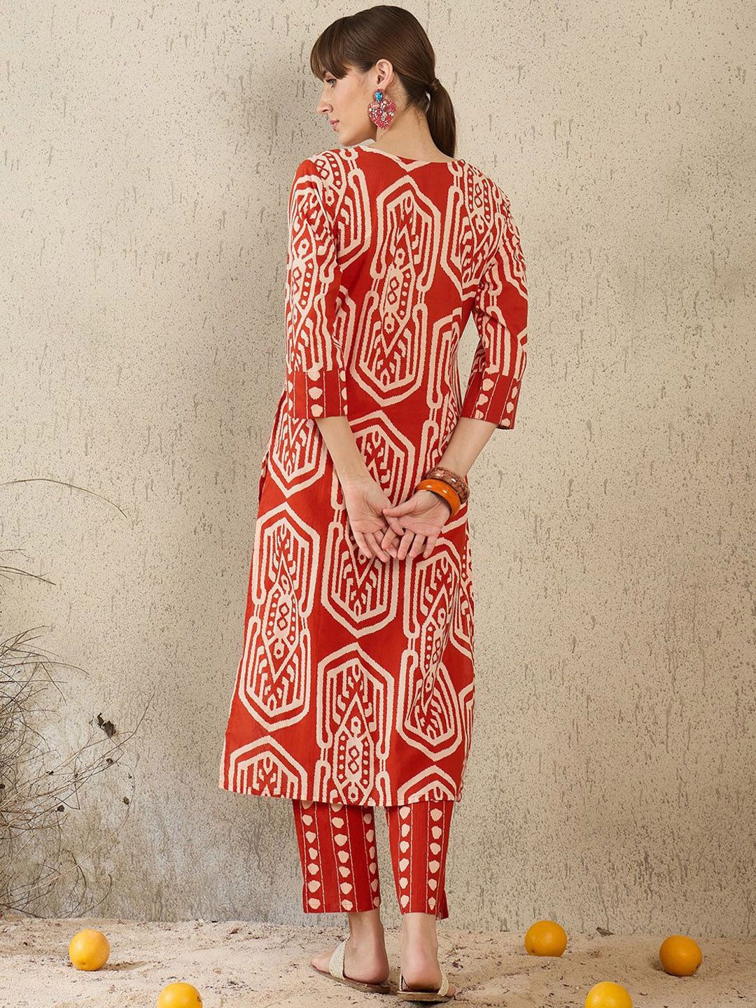 Dhiyona IE Women Printed Round Neck Cotton Top and Trousers Co-Ords