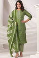 Dhiyona IE Women Printed Thread Work Pure Cotton Kurta with Trousers & Dupatta