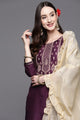 Dhiyona IE Women Purple Ethnic Motifs Yoke Design Thread Work Kurta with Trousers & Dupatta