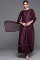 Purple woven design Kurta with Palazzos with dupatta