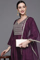 Dhiyona IE Women Purple Yoke Design Mirror Work Kurta with Trousers & With Dupatta