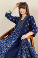 Navy Blue & White Printed Kurta with Trousers & Dupatta