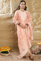 Peach-coloured woven design Kurta with Trousers with dupatta