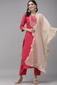 Dhiyona IE Women Round Neck Embroidered Kurta & Trousers With Dupatta