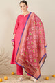 Pink & Green Solid Kurta with Trousers & Dupatta