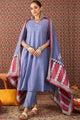 Blue & Red Solid Kurta with Trousers & Dupatta