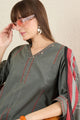 Grey & Pink Embroidered Kurta with Trousers & Dupatta