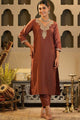 Dhiyona IE Women Solid Embroidered Kurta with Trousers