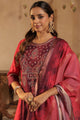 Pink & Maroon Solid Kurta with Trousers & Dupatta