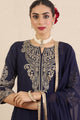 Navy Blue & Gold Woven Design Kurta with Pyjama