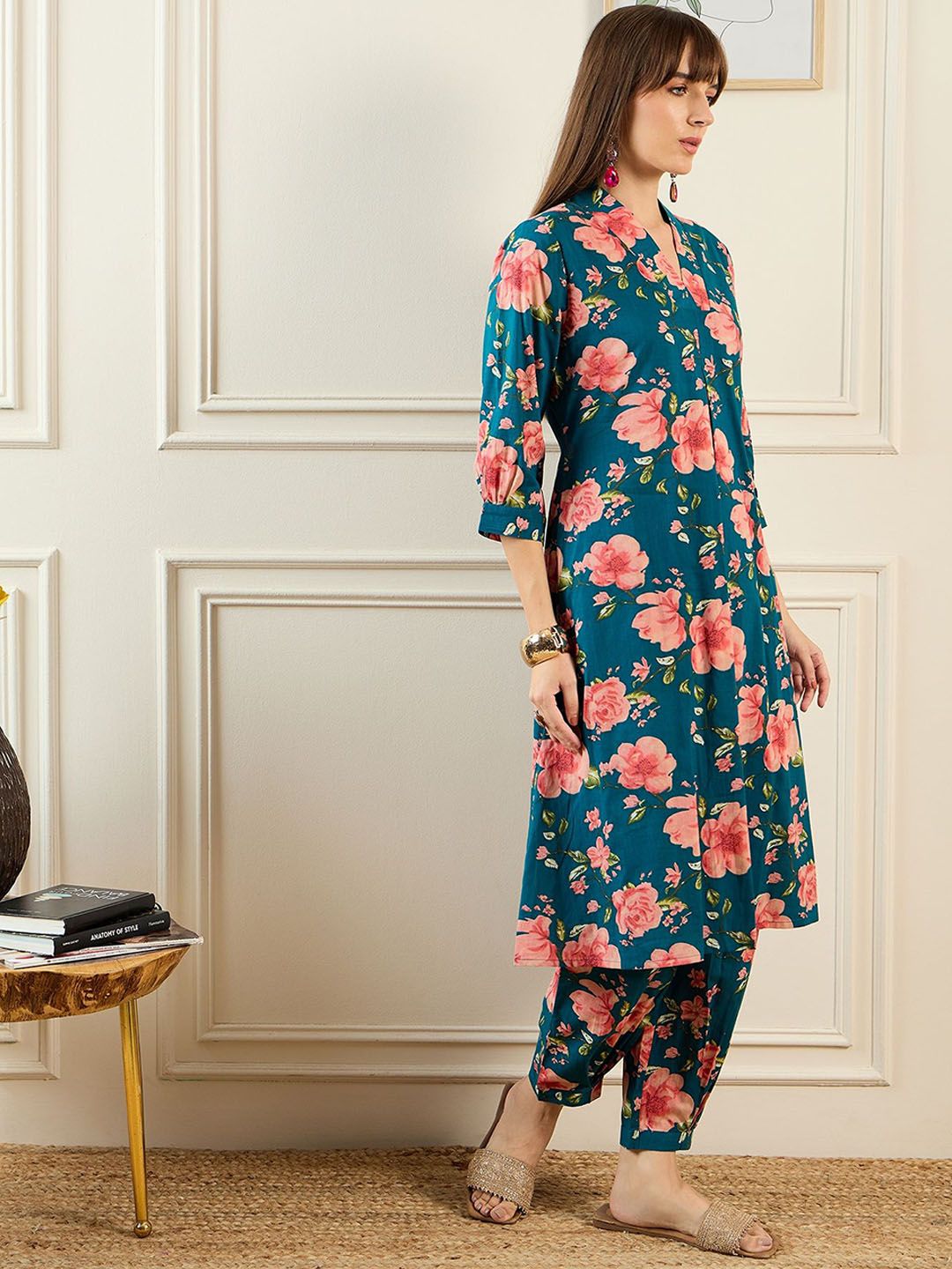 Dhiyona IE Teal Printed Smart Casual Co-Ords set