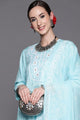Turquoise blue embroidered Kurta with Trousers with dupatta