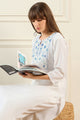 Dhiyona IE White Embroidered Straight Kurta Trousers set
