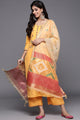 Yellow embroidered Kurta with Palazzos with dupatta