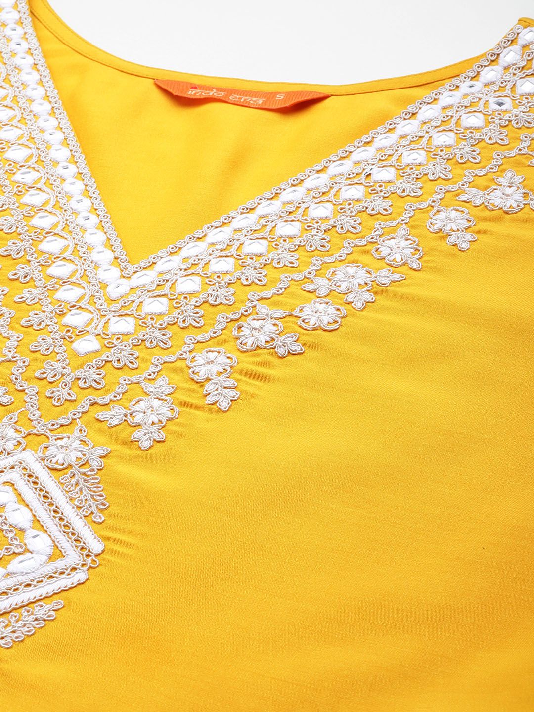 Dhiyona IE Women Yoke Design Regular Mirror Work Kurta with Trousers & Dupatta