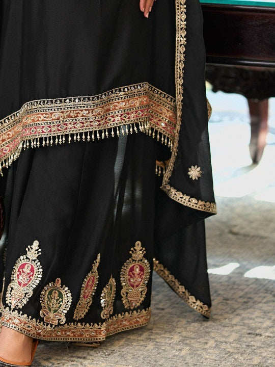 Dhiyona IE Women's Embroidered Mirror Work Straight Kurta With Palazzos & Dupatta