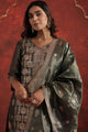 Dhiyona IE Woven Design V-Neck Zari Straight Kurta With Trousers & Dupatta