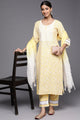 Dhiyona IE Yellow Floral Embroidered Thread Work Straight Kurta With Trousers & Dupatta