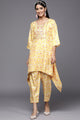 Dhiyona IE Yellow Paisley Embroidered Round Neck Straight Kurta with Trousers