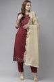 Maroon & beige yoke design Kurta with Trousers with dupatta