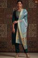 Teal blue, blue yoke design kurta & trousers with dupatta