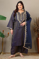 Dhiyona IN Ethnic Motifs Thread Work Straight Kurta With Palazzos & Dupatta