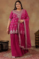 Magenta & silver toned embroidered Kurta with Sharara with dupatta