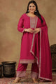 Magenta & Gold-toned embroidered Kurta with Trousers with dupatta